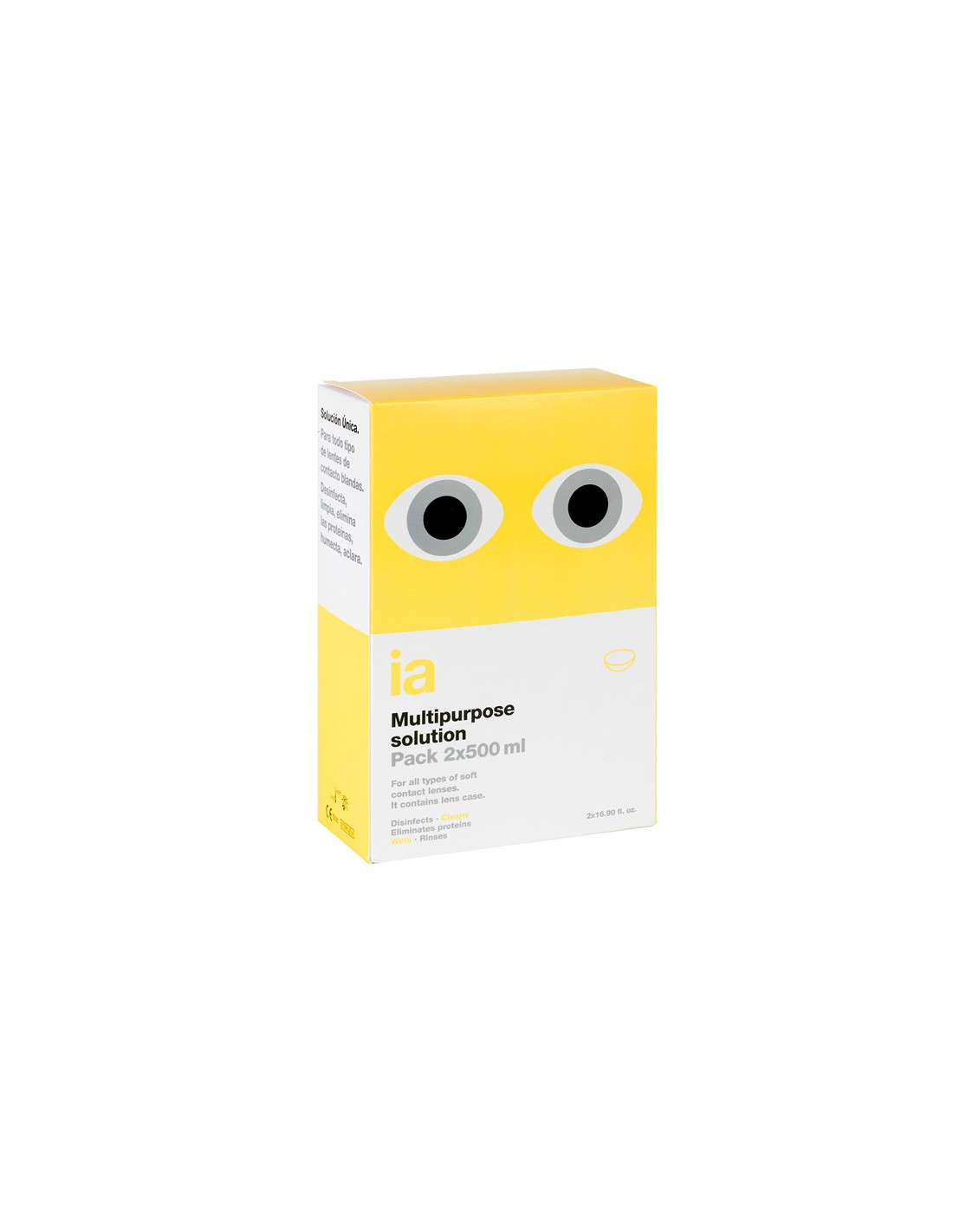 Solución estéril para limpiar, desinfectar, enjuagar, hidratar y conservar todo tipo de lentes de contacto blandas. Pack ahorro con 2 envases de 500 ml.