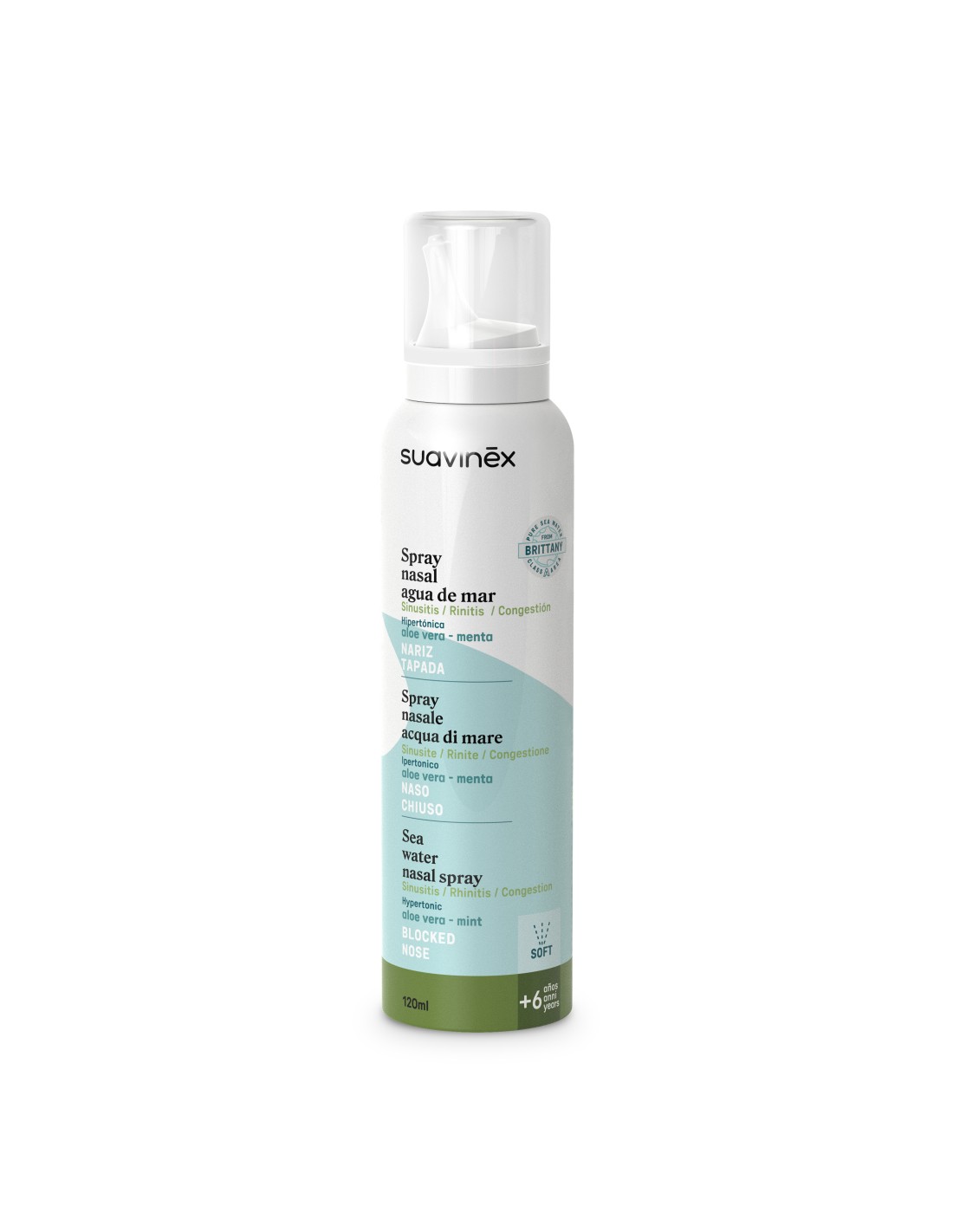 Recomendación del farmacéutico: Este spray nasal es ideal para aliviar la congestión de manera natural en niños mayores de 6 años y adultos, gracias a la combinación de agua de mar, aloe vera y menta.