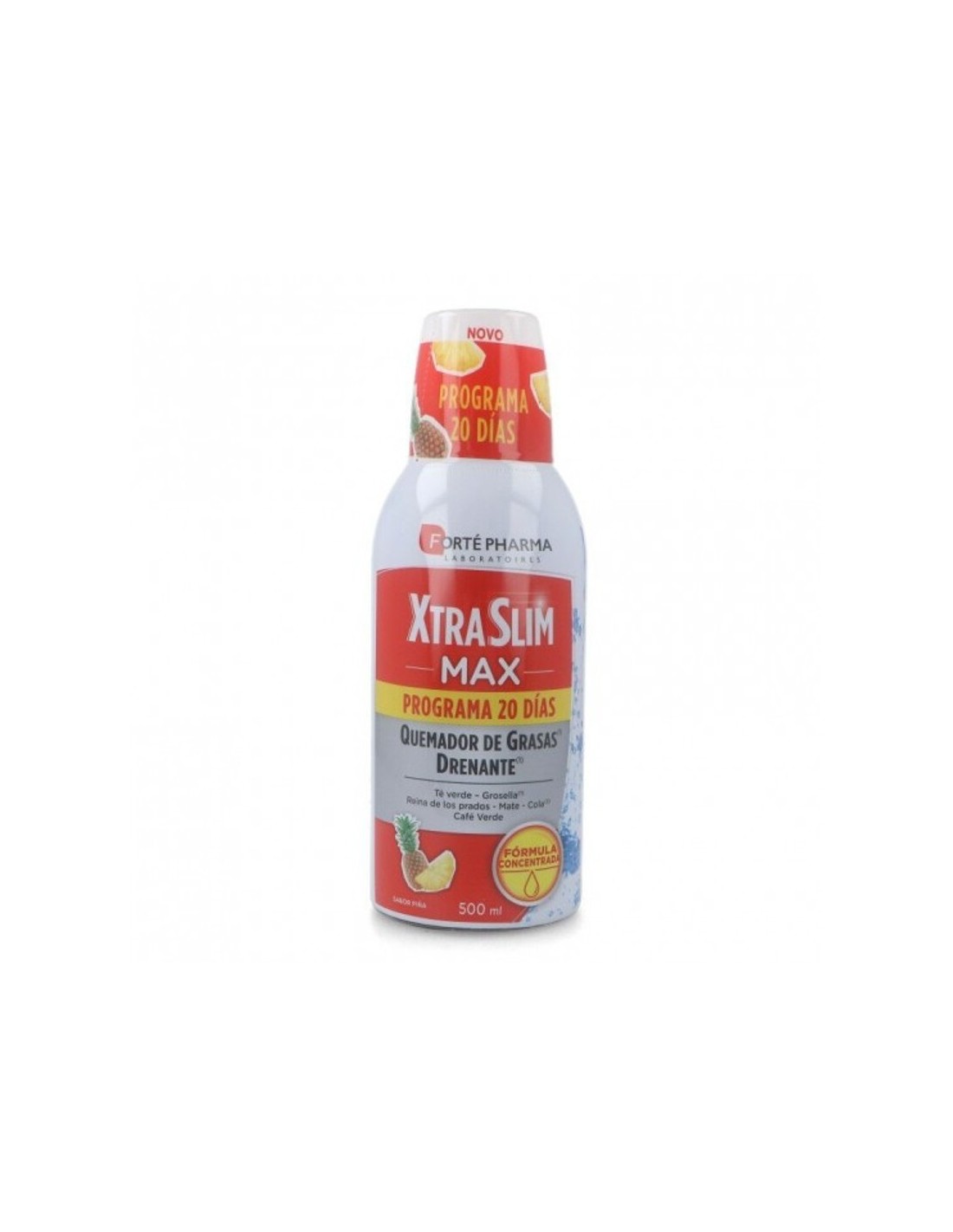 Forte Pharma Xtraslim Max 500ml es un complemento alimenticio bebible diseñado para quemar grasas a base de té verde y grosella. Procedimiento de 500 ml durante 20 días.